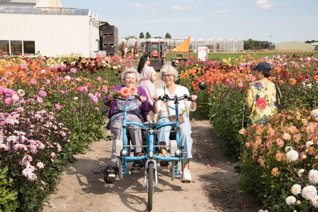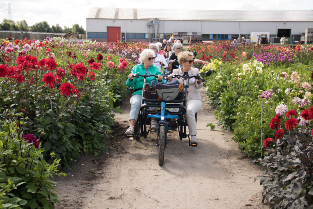 Met een heerlijk zonnetje op ons gezicht en een verkoelend briesje genoten onze gasten en vrijwilligers van een ontspannen tocht langs de bloeiende dahliavelden. De route voerde via Sassenheim, Lisse en Hillegom richting Keukenhof, waar we neerstreken bij de Hofboerderij. Daar genoten we van de prachtige dahliatuinen én een heerlijke lunch met een verfrissend drankje. Op de terugweg reden we door de schitterende pluktuin van De Tulperij. Als extra verrassing kreeg iedereen bij vertrek een mooie dahlia mee naar huis – een kleurrijk aandenken aan een fantastische dag!