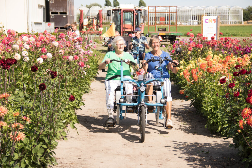 We trapten het weekend op vrijdag af bij de Oude School in Warmond, waar 16 duofietsen vertrokken. We werden hartelijk ontvangen met koffie en heerlijk appelgebak – een perfecte start voor een ontspannen rit langs de kleurrijke dahlia’s. Op zaterdag vertrokken de 15 duofietsen vanaf het Sassenest. Ook daar stond de koffie met gebak klaar, zodat iedereen met goede energie aan de tocht kon beginnen. Afsluitend werd op zondag gestart vanuit Voorhout, bij Cheers, wederom met 15 duofietsen. En ja: ook hier werden we lekker verwend met koffie en gebak!