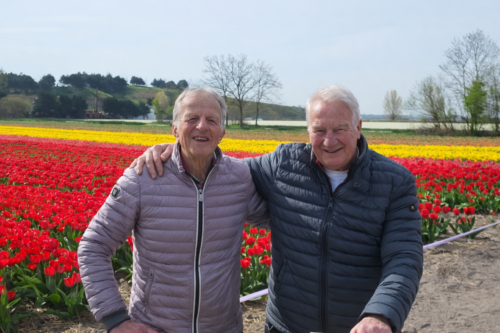 Sinds enige maanden fiets ik met de 82 jarige Piet de Bruijn. Piet is voor vele Sassemers beslist geen onbekende. Maar liefst 600 wedstrijden kwam hij voor zijn club Ter Leede uit. Piet was een keiharde verdediger die menig kopduel niet schuwde. Kort geleden maakten we samen weer een mooie rondrit door de streek. Een lieve fotografe maakte deze foto van ons met uiteraard rood gele clubkleuren als achtergrond. Onderweg geniet ik van zijn droge humor.