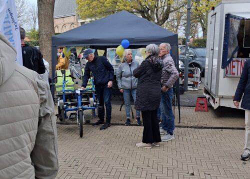 We stonden er niet voor niets. Er was flink belangstelling en er zijn diverse proefritjes gemaakt met potentiële gasten én vrijwilligers. Met dank aan Ron en Henk en Paul!! Daarnaast hebben we veel geïnteresseerden gesproken en kwamen diverse vrijwilligers even ‘buurten’. Dat doet altijd goed! We hebben zelfs collega Fietsmaatjes uit Deurne gesproken en Ron heeft meteen een foto gemaakt van de pet, een leuk idee!!